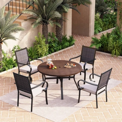 48″ Metal Round Dining Table With 1.97″ Umbrella Hole – Black – Captiva Designs
