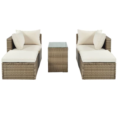 5pc Wicker Patio Seating Set With Cushions – Brown/Beige – GODEER