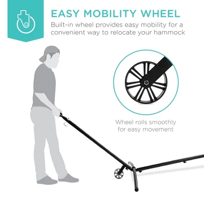 - EASY MOBILITY WHEELBuilt-in wheel provides easy mobility for a convenient way to relocate your hammockWheel rolls smoothly for easy movement