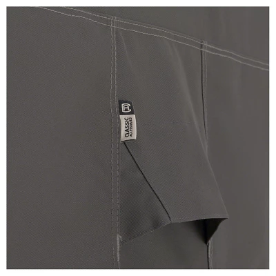 If you live in an area where you can’t enjoy your patio furniture year-round, invest in a cover that will protect your tables and chairs from wind, snow and mildew. The Ravenna Square Patio Table and Chairs Cover from Classic Accessories is a high-quality outdoor furniture cover that will keep your table and chairs secure and unharmed. The crack- and water-resistant table cover shuts out snow and rain, in addition to wind, with unique side vents that keep the cover from blowing up in strong winds. Adjustable hem cord, straps and handles let you find the best fit to keep your furniture in place through the winter. Note the large cover is not a square, but it designed to fit a square table and chair set. *Please refer to your furnitureās care instructions as some finishes, sealants or coatings could react to PVC backed covers. To reduce this possibility, the use of a support pole (sold separately) is recommended to elevate the cover.