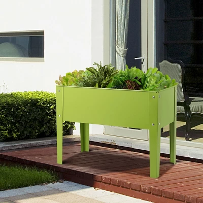 17.8”high green elevated garden planter, making it perfect for those who do not like to bend down or lean over while they garden