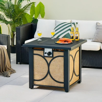 - Premium Material & Extra Cover: Made from a powder-coated metal frame, this CSA certified fire table will endure the outdoor environment and last for many years to come. It comes with an all-weather PVC cover, which is rainproof, sun-protective, wind-resistant and dustproof. Plus, the fabric panel with elegant pattern delivers a hint of vintage and creativity.