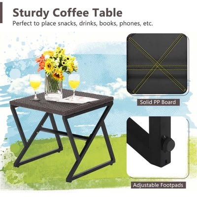 Costway 3PCS Patio Rattan Wicker Rocking Chairs Table Bistro Set Cushioned Rocker Garden