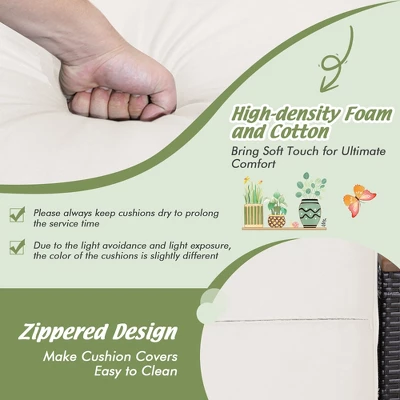 Costway Set Of 2 Patio Rattan Ottoman Footrest Cushions Wooden Handle Off WhiteBrownRedNavy