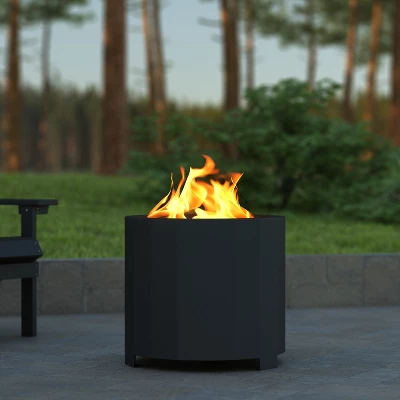 Extend your outdoor time with family and friends while staying cozy and warm when you gather around this outdoor smokeless wood burning fire pit available in 3 finishes to fit your personal style. The unique double wall design creates an airflow pattern that draws the bulk of the smoke back into the burn chamber so you can enjoy your leisure time without irritated eyes or nasal passages. The unique all-in-one design of this backyard firepit has an integrated stand to elevate the steel frame adding an extra layer of heat protection to ground surfaces. The lightweight, portable design gives you the freedom to take this firepit tailgating, camping, or to the beach while the lift-out grate gets rid of any debris left from your last fire and the waterproof cover keeps this unit looking great year round. With no assembly required, this modern firepit is ready for use right out of the box and wipes clean with a damp cloth.