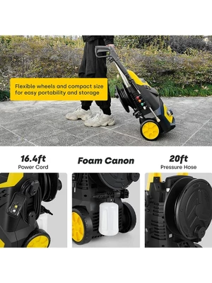 - HIGH PRESSURE WASHER: This electric pressure washer has a powerful motor and generates a strong water pressure. This pressure washer will allow you to quickly and easily remove dirt and grime.