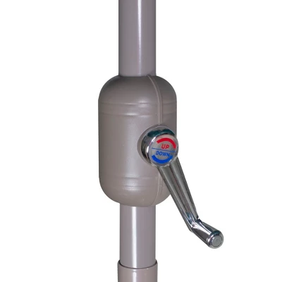 Enjoy tons of fresh air this summer without having to sit in the hot sun. Ideal for covering a 30-inch bistro style table. Features a sturdy, powder-coated aluminum frame with steel ribs, built to last a lifetime. The crank opening allows for ease of use. Features:Umbrella shape: hexagon Canopy color: taupeFrame and pole color: brown Diameter of open umbrella: 7.5′ Height: 7.5′ Pole diameter: 1.5″ (38mm) Lift: hand crank 6 ribs Material(s): 160 gram polyester canopy/powder-coated aluminum pole/steel ribs Note: Umbrella only, base is not included