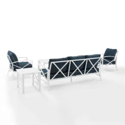Kaplan 3pc Outdoor Sofa Set With Sofa & 2 Arm Chairs – Navy – Crosley