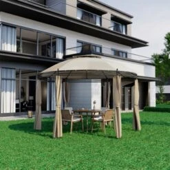 Tangkula 11.5’Outdoor Patio Round Dome Gazebo Canopy Shelter Double Roof Steel Brown