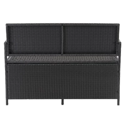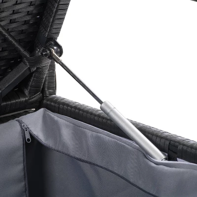 Looking for a stylish storage option? Well, you found it with our black rope weave patio bench. Its powder-coated steel frame helps resist rust and its all-weather, UV resistant resin wicker maintains a bright and fresh appearance year after year. With a removable protective liner, air shock control, and a water-resistant cover, it’s functional as well as sleek.