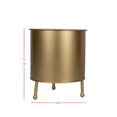 A sleek, modern planter from Foreside Home and Garden. Elevate the look of your greenery with the simple, yet refined design of this metal pot. With its clean brass finish and three metal legs, it is sure to elevate the look of any room in your home. Greens and botanicals will pop against the brass tones.