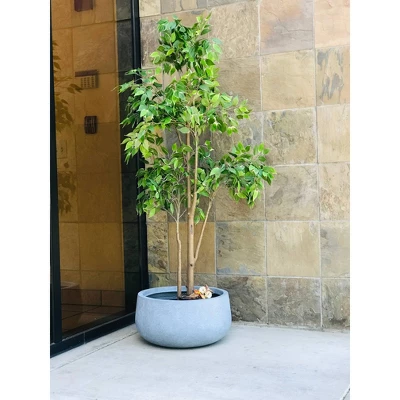 Rosemead Home & Garden, Inc. 16″ Wide Kante Lightweight Outdoor Concrete Oval Bowl Decorative Planter Slate Gray