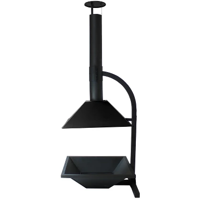 With this black, steel, wood-burning, modern backyard feature, a chiminea meets a fire pit to bring the best of both worlds to any backyard. This simple, elegant, fire pit and chiminea is the perfect way to heat up on the patio, bring fun in the backyard after dark, or add a unique feature to the campsite or cabin. This chiminea features a durable, steel construction with a high-temperature, black paint finish so it is sure to last through many seasons of use and remain resistant to the elements outdoors. With the open fire design, easily tend to the fire with a poker or a log clamp (not included) to keep the fire burning all night long while the chimney-like feature keeps the smoke and soot of the fire away from your immediate surroundings. This fire pit and chiminea combo is sure to be the center of your memory making with family and friends.