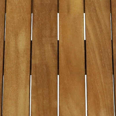 Use this square table in any outdoor living space and enjoy its classic style. Great for game nights with friends and family, snacks during parties and barbecues, and cozy dinners on a nice night, this table has multiple great uses while staying stylish. The dining table features premium teakwood construction to keep a light, wooden look and has a brown wood stain for increased weather resistance and long-lasting strength. When weather conditions get rainy, it’s still a good idea to bring your table indoors to keep it safe and ensure a longer life! The table features wooden planks on the top and tight, sturdy legs to keep it steady. This table is wonderfully designed to easily put it in the corner or other tight areas in need of an uplifting and functional piece. Place it in your outdoor patio, deck, terrace, garden, or yard for full use of this beautiful, light wood, casual dining table.